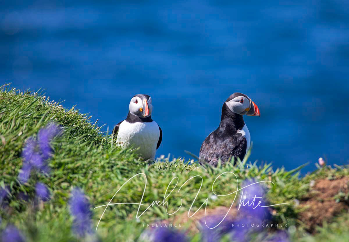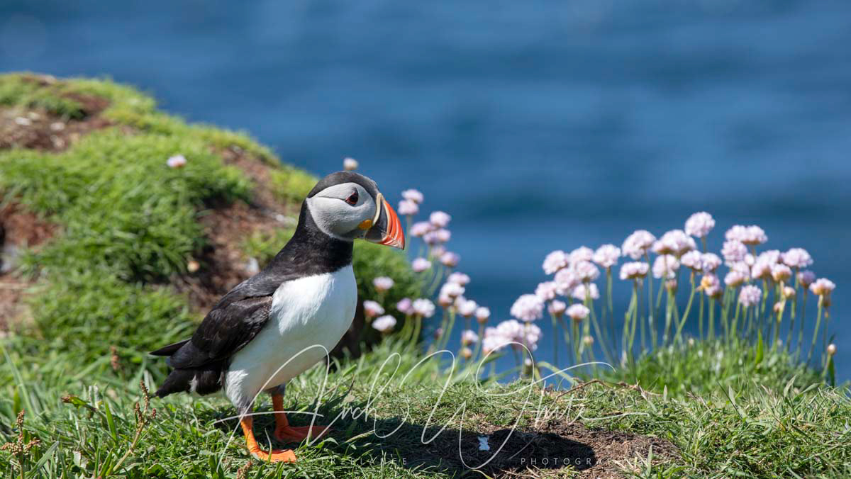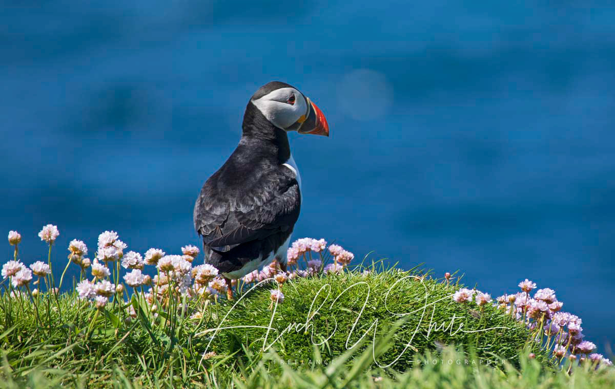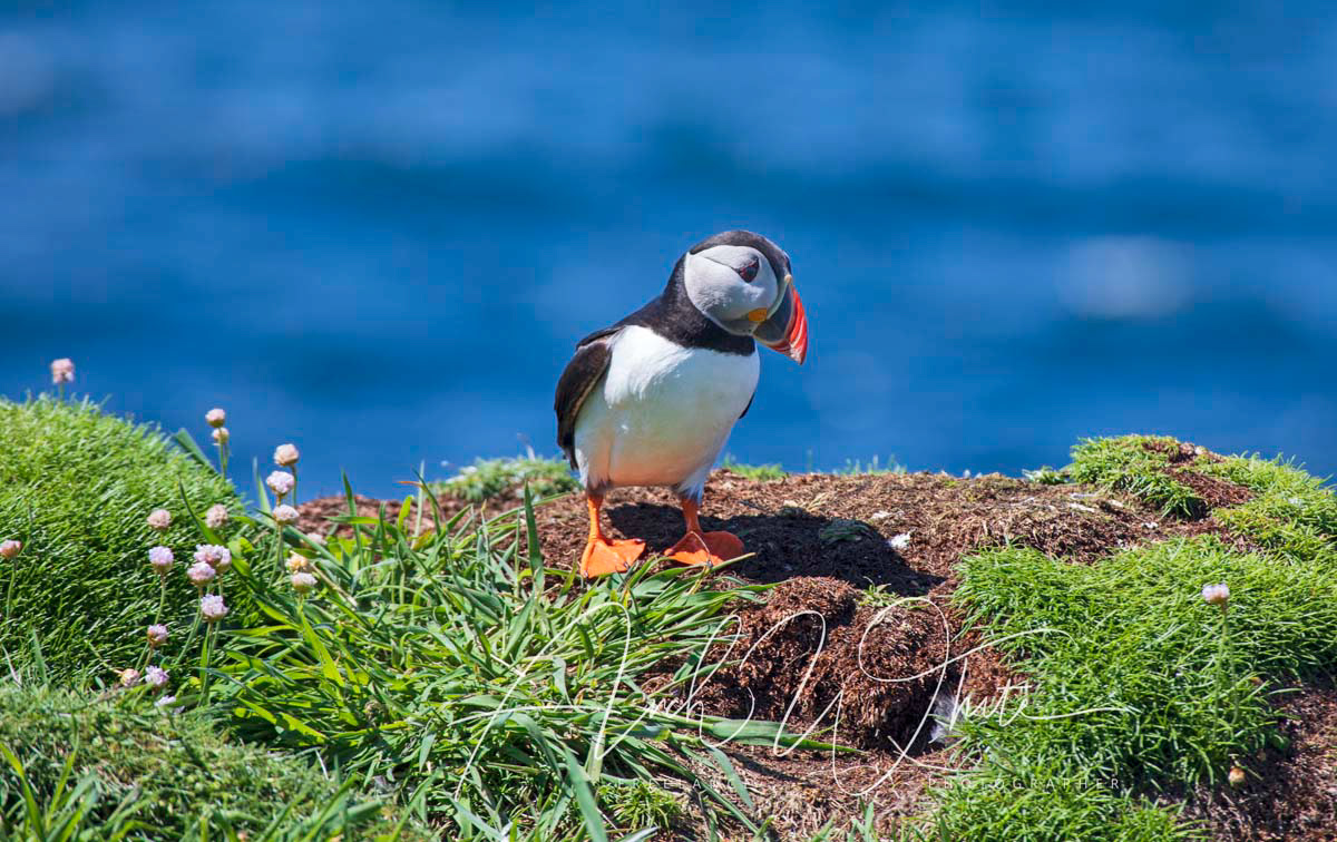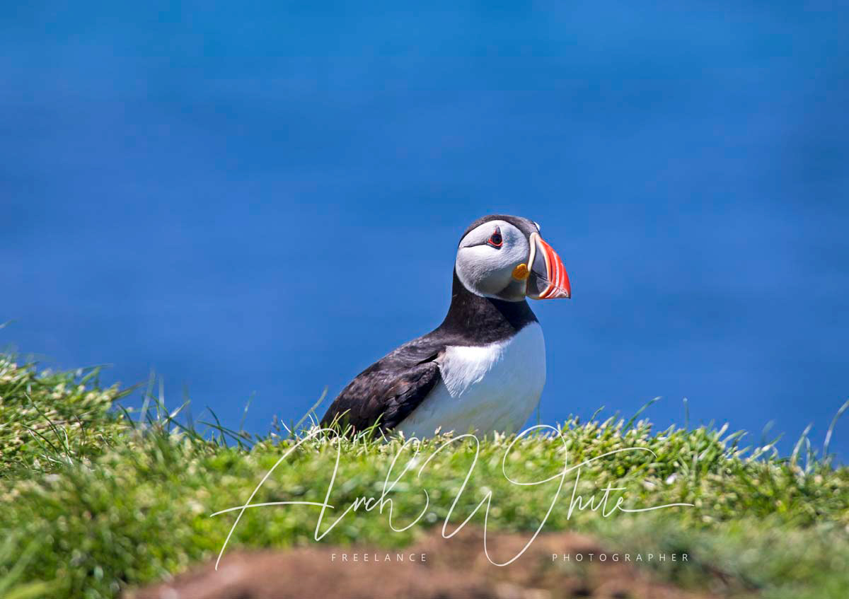 Puffins on Lunga island, Argyll and Bute, Scotland