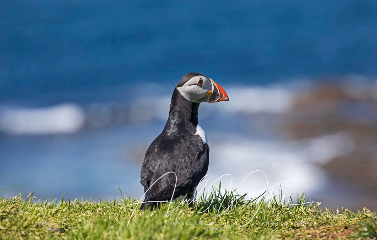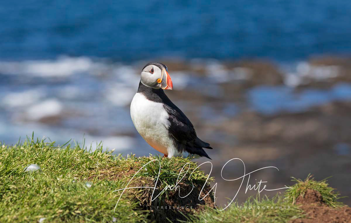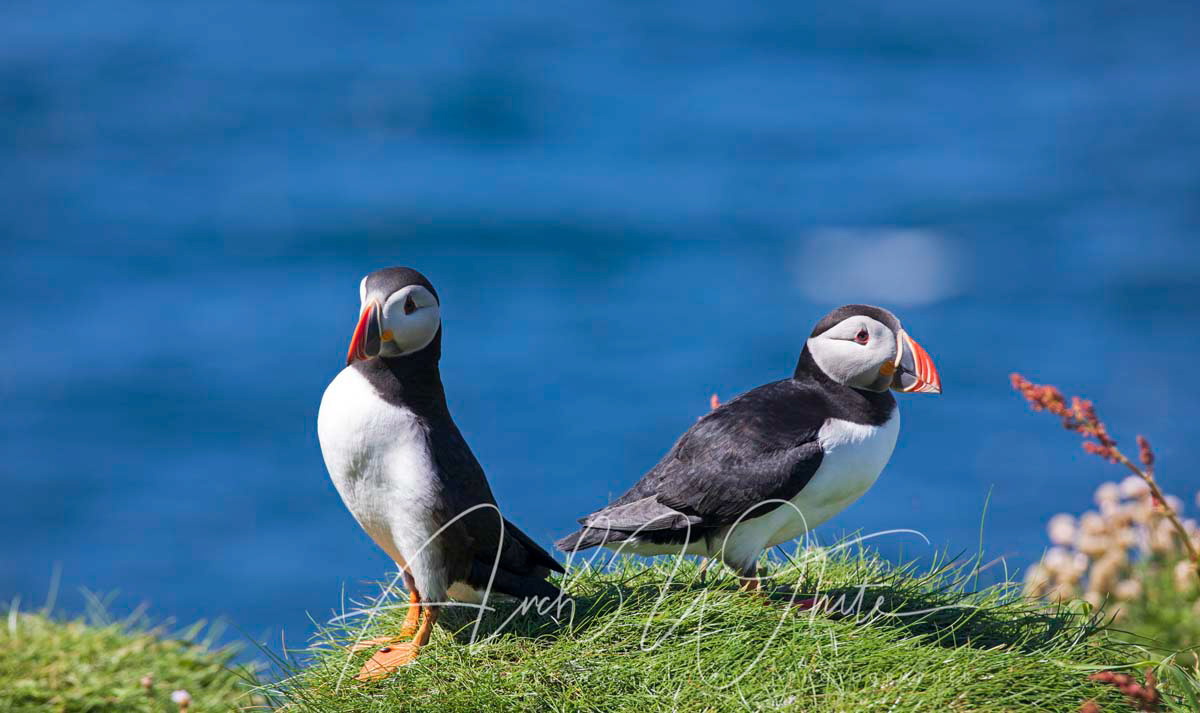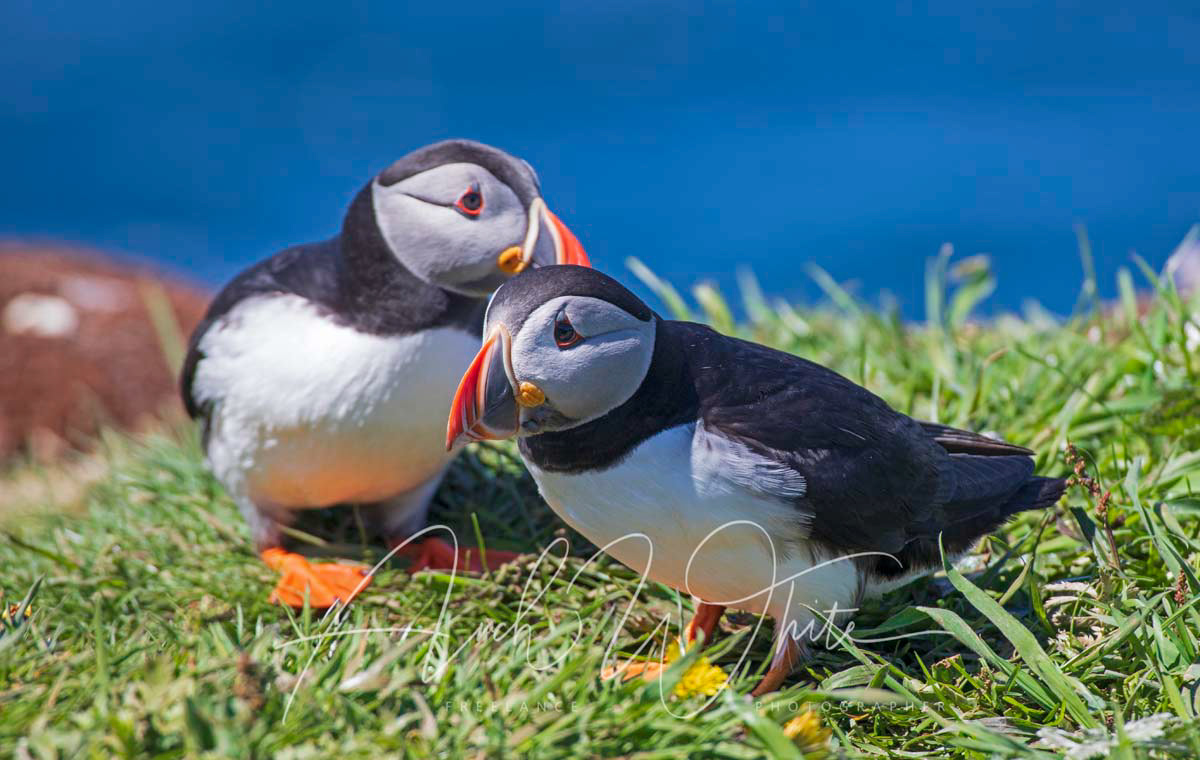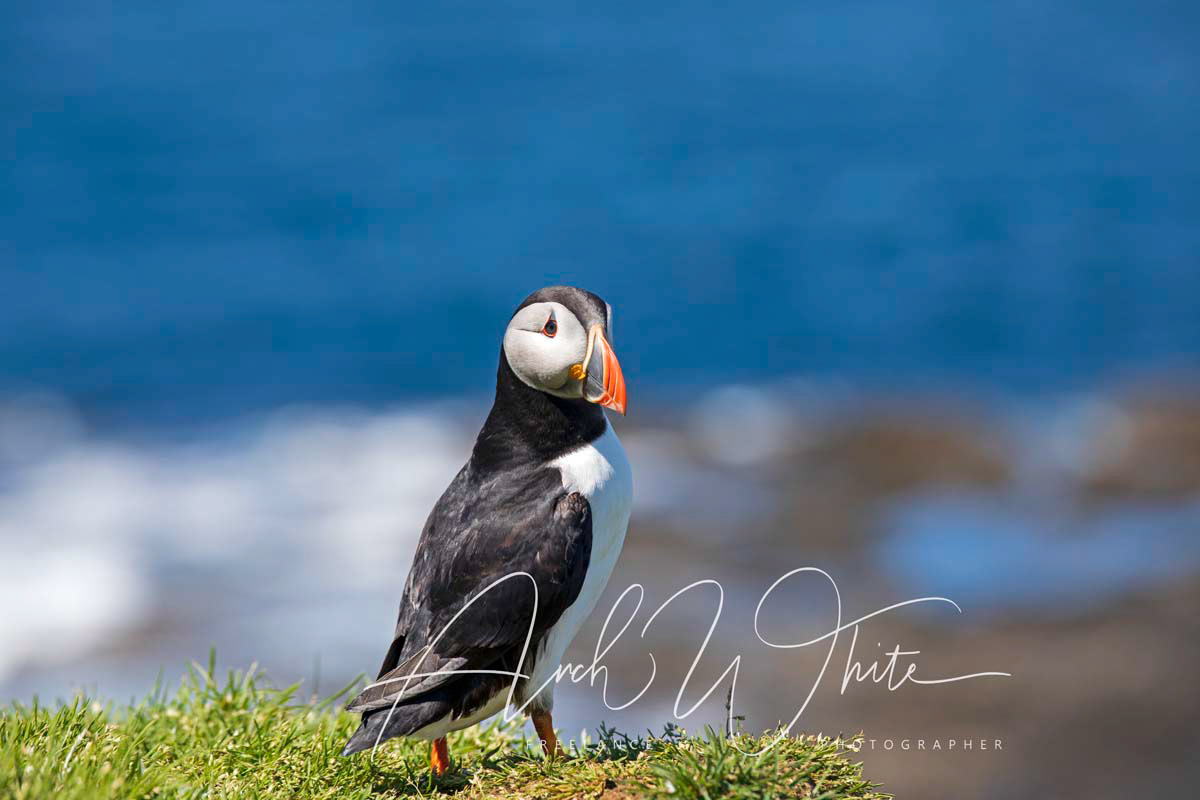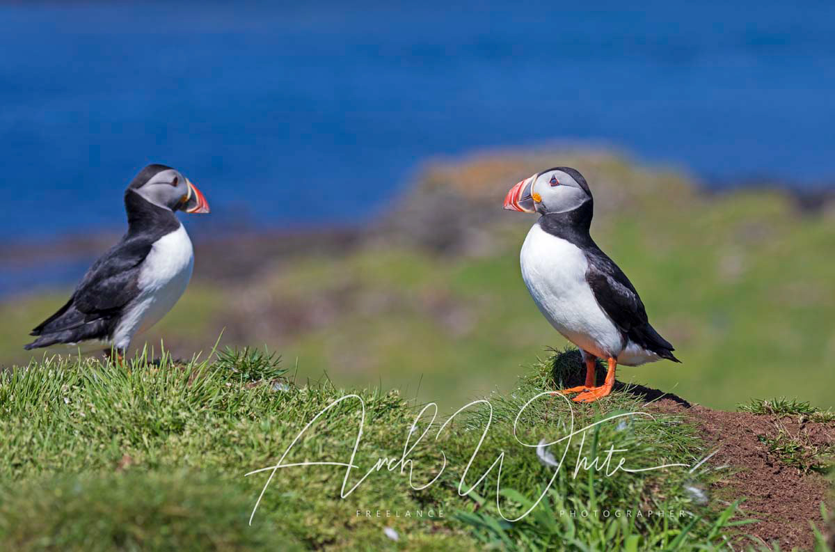 Puffins on Lunga island, Argyll and Bute, Scotland
